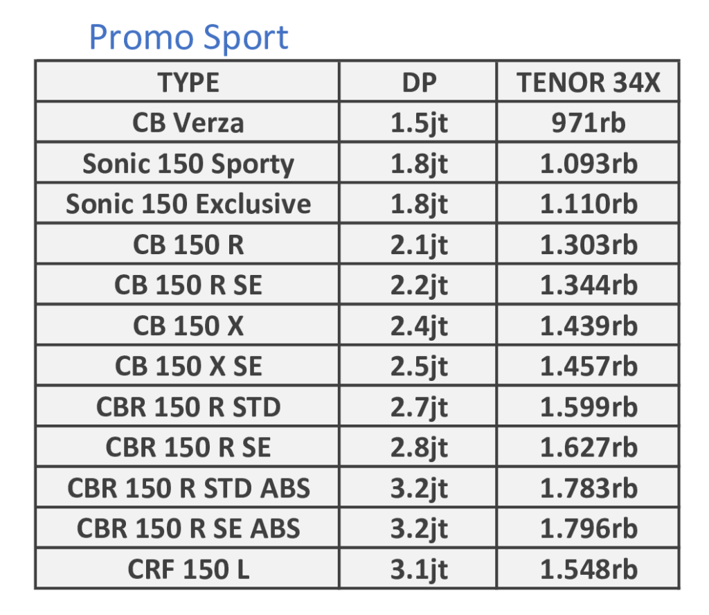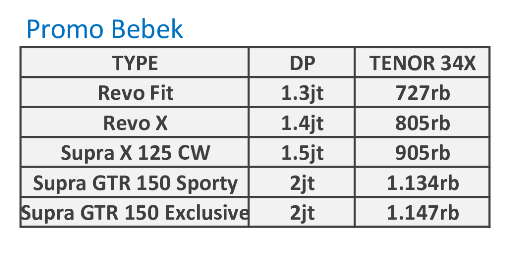 Info lebih lanjut bisa cek daftar harga Promo Spesial kredit motor Mei 2023 Dibawah ini: