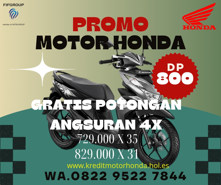 Promo kredit motor Honda bandung & Cimahi tempatnya kredit paling murah dengan DP Mulai Rp 800 Ribu angsuran Rp 729 Ribu anda sudah bisa memiliki Motor impian anda selama ini. Di tempat kami anda bisa mendapatkan Promo diskon dan program DP minim& cicilan ringan hingga gratis potongan 4x angsuran.