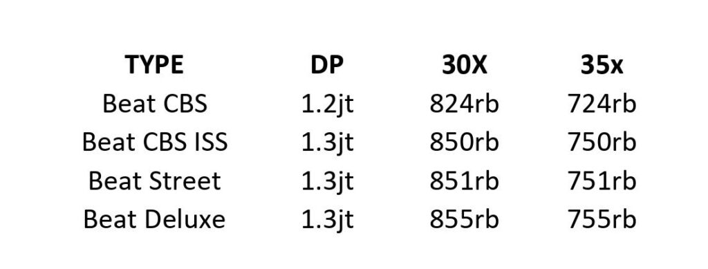 - Bayar DP setelah Motor diterima (jangan lupa check unit terlebih dahulu agar tidak ada komplen)